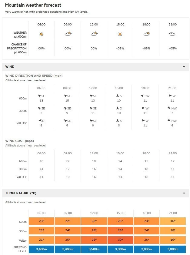 Mountain weather: Check MWIS and/or Met Office Mountain forecasts for your region (wind/wet/cloud on hills/temperature).